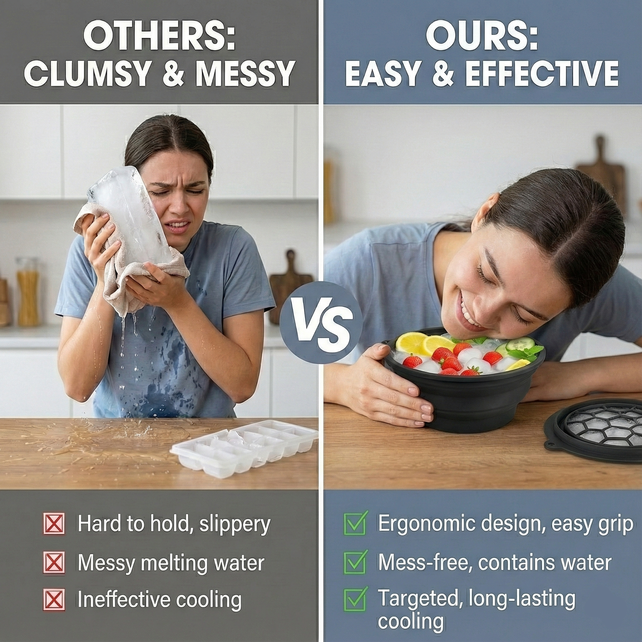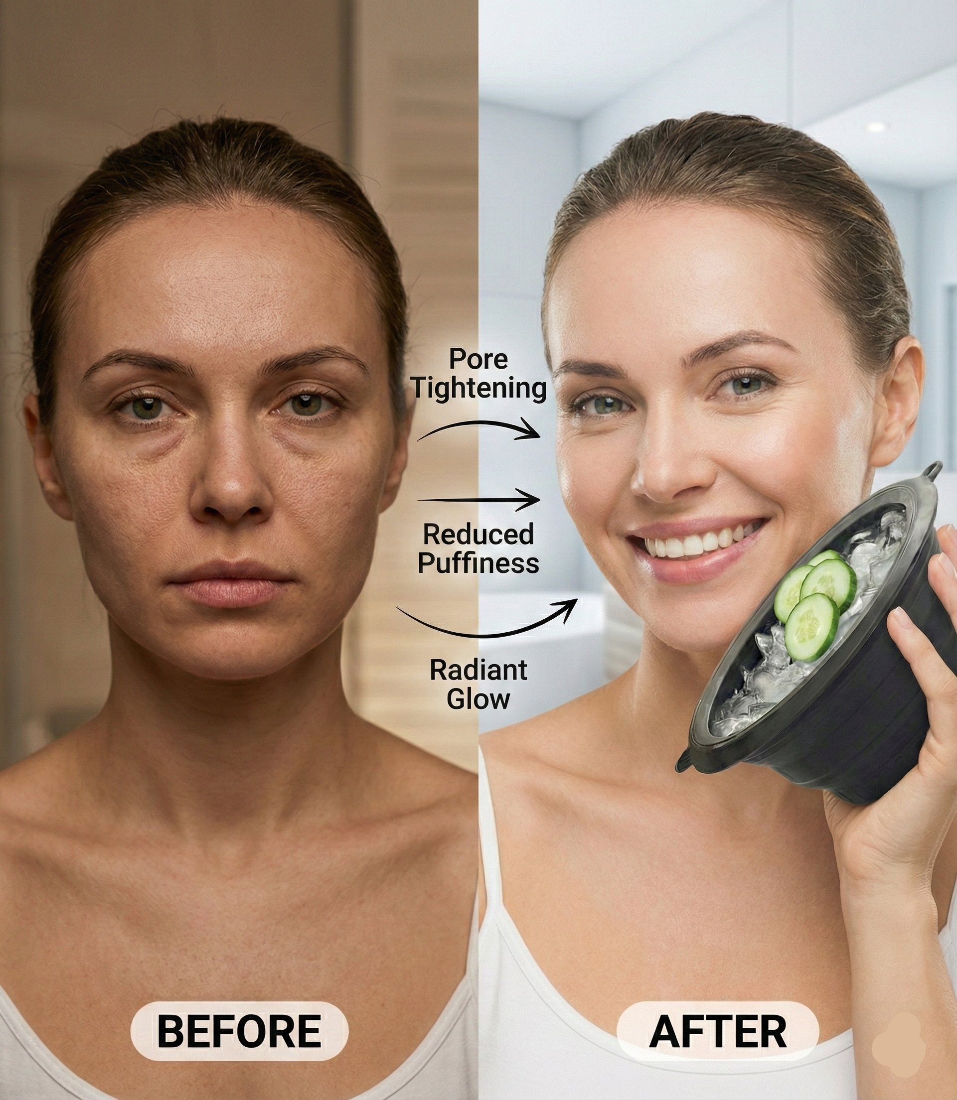 Say goodbye to messy setups! This innovative Icy Face Bowl comes with a built-in ice tray — no need for separate ice molds or extra freezer space. Simply fill it with water, freeze, and dip your face for an instant cooling therapy that tightens pores, reduces puffiness, and leaves your skin feeling refreshed and energized.
