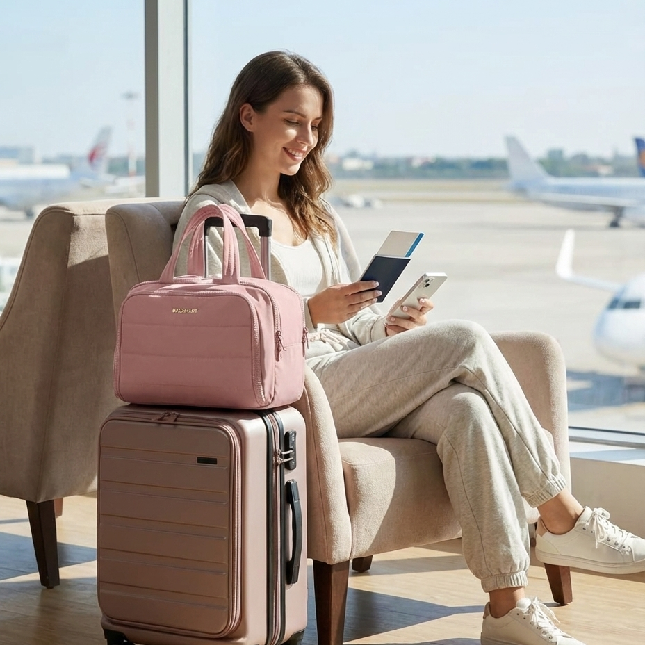 With a large size of 11.8” L × 7.3” W × 8.73” H, this toiletry bag features 4 well-designed compartments to neatly organize your travel toiletries, skincare, and makeup essentials—everything in its place, always.